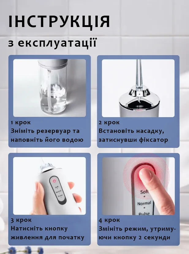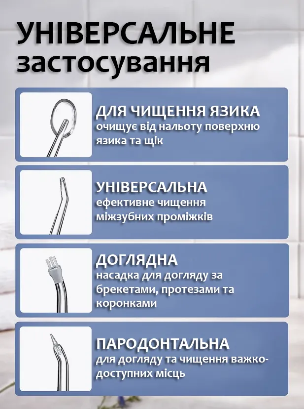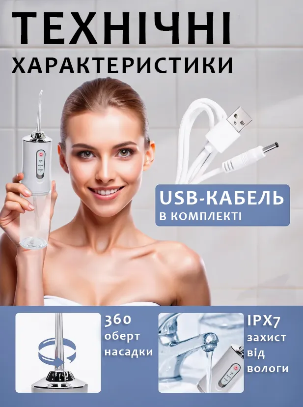 Іригатор зубний ефективно видаляє зубний наліт, бактерії, залишки їжі, масажує ясна.